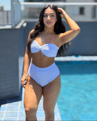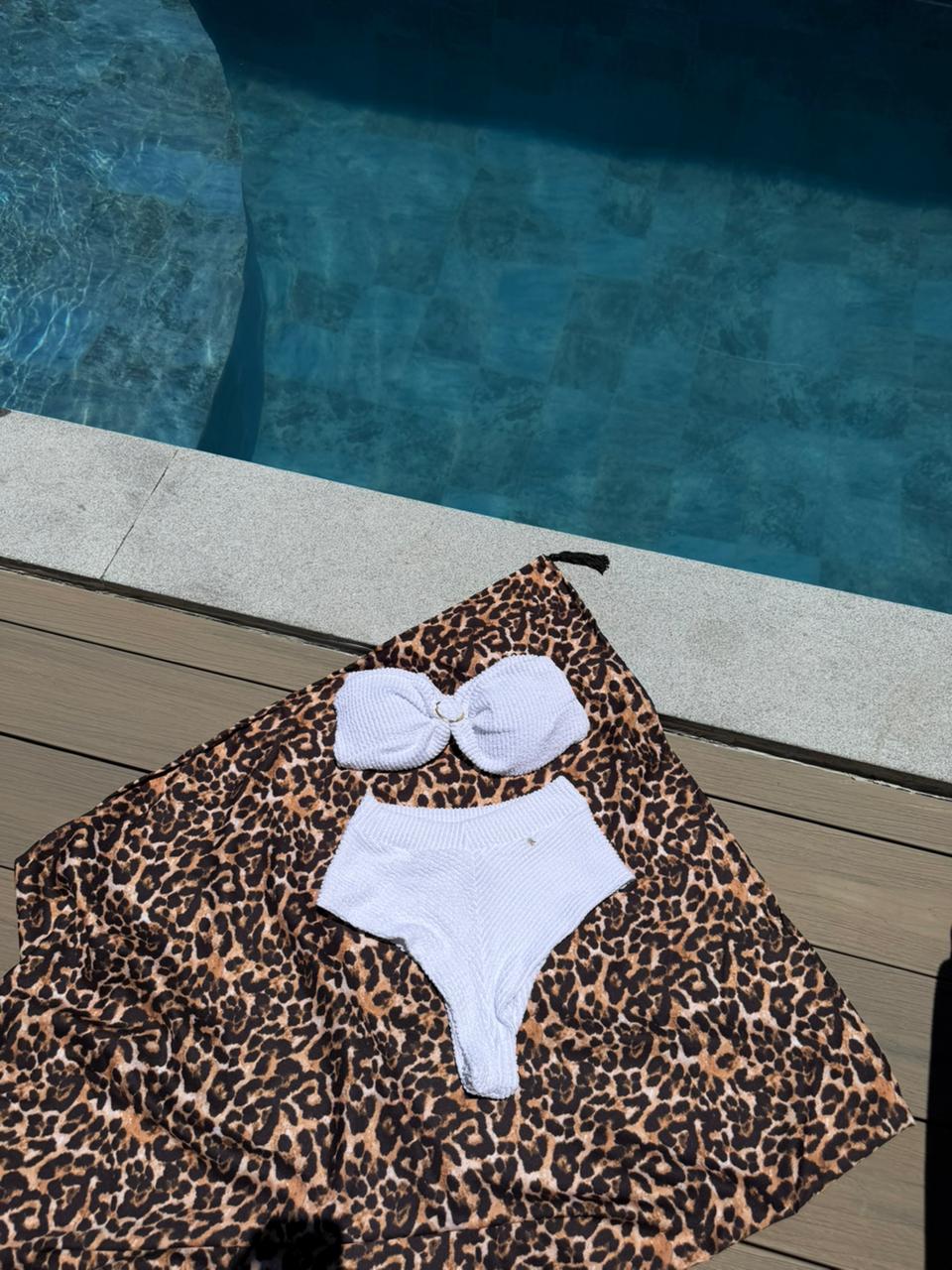 A calcinha Cape Town é um modelo cintura alta com fio duplo. É uma escolha moderna e elegante para a moda praia.