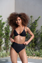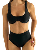 A calcinha Cape Town é um modelo cintura alta com fio duplo. É uma escolha moderna e elegante para a moda praia.