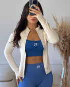 Jaquetinha esportiva de manga comprida, super confortável feita em Nylon.